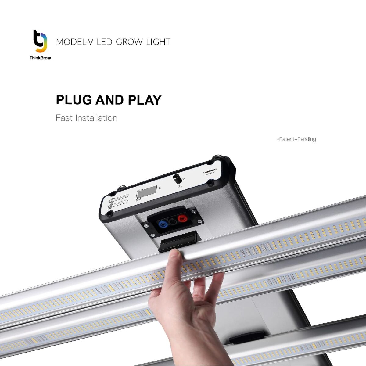 ThinkGrow Model-V 250w, pensado para la fase vegetativa o ciclo completo del cultivador casero que no necesita mucha potencia. Mantiene las ventajas de poder controlar el espectro en dos canales separados (blanco y rojo lejano) usando el adaptador LMA-T. Este adaptador te permitirá controlar hasta 256 luminarias conectadas en línea o con múltiples adaptadores dentro del mismo sistema de control.