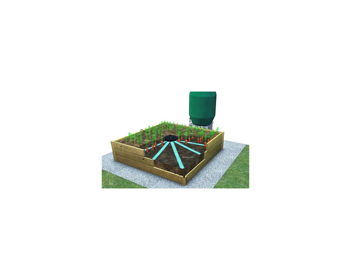 Con una sección de manta por capilaridad conectada al AQUAbox Spyder, se reparte el agua a lo largo de 1 m2 y bajo tierra. La válvula Aquavalve 5 funciona como núcleo, mientras que el Aquabox Spyder utiliza el suministro proveniente del tanque de agua adecuándose a la demanda de las plantas, de tal forma que se realiza un uso eficiente del agua. A las secciones de manta de capilaridad se adherirán las raíces de las plantas al buscar el agua.
