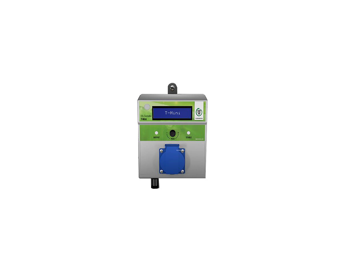 Este controlador completamente rediseñado es ahora más fácil de utilizar además de ser compatible con muchos otros productos de TechGrow. El T-Mini Pro mide, controla y muestra valores de CO₂ y registra valores mínimos y máximos. Viene con un sensor de luz integrado para cambiar de forma automática entre los modos diurno y nocturno. No hay distribución de CO₂ durante la noche.