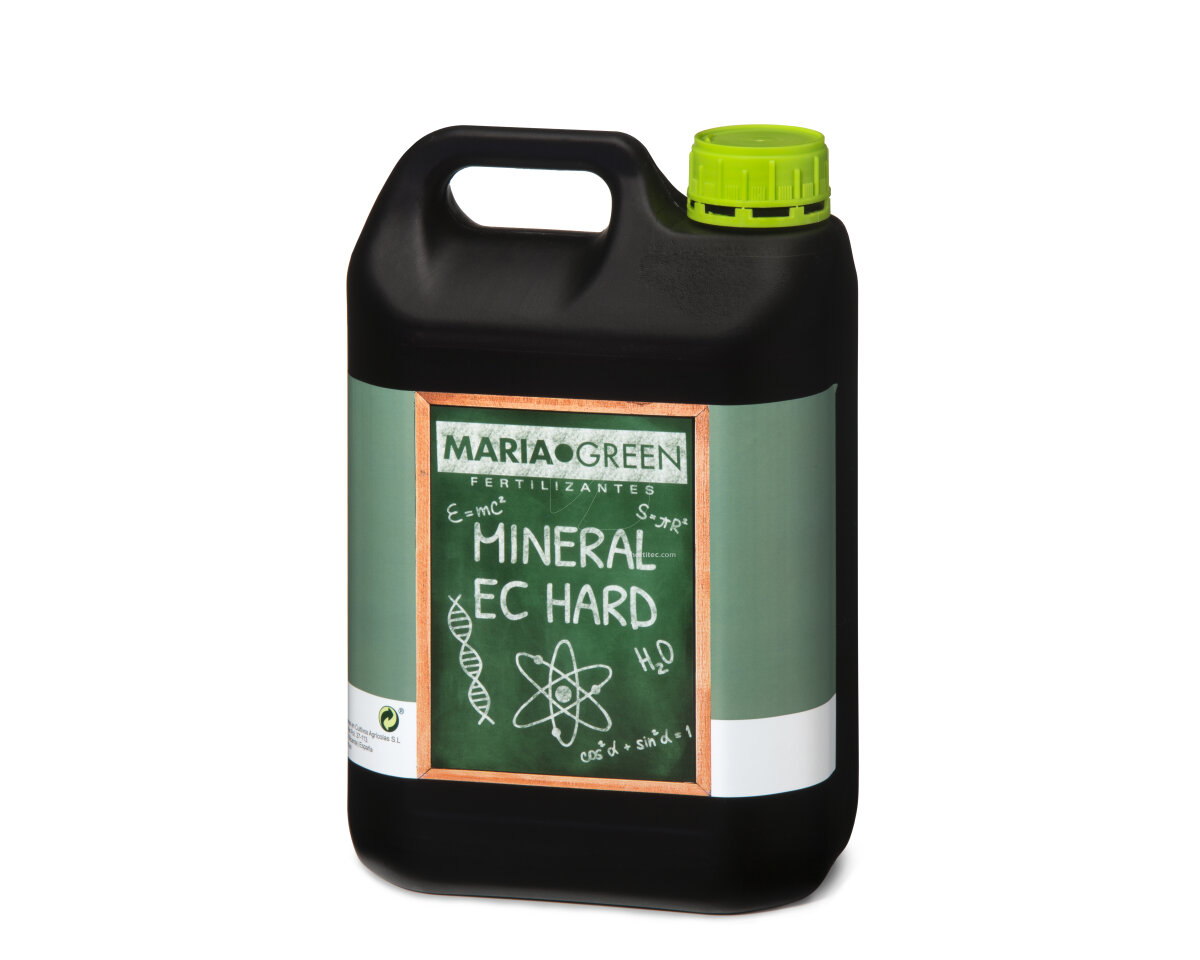 Mineral EC Hard, es un producto que combinado con Maria Green Mineral Grow y Maria Green Mineral Bloom, aportan una nutrición equilibrada con todos los nutrientes necesarios para completar el ciclo de cultivo. Dependiendo de la electroconductividad del agua se recomienda Maria Green Mineral EC Hard para aguas duras y Maria Green Mineral EC Soft para aguas blandas.