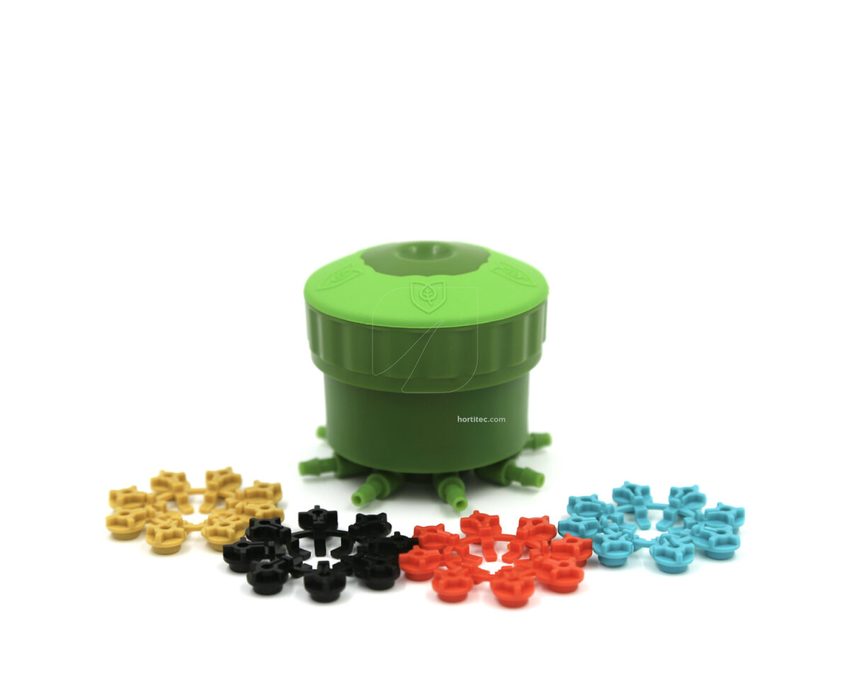 El Bubbler FloraFlex ® es un colector de ocho salidas que entrega agua y nutrientes a sus plantas a la presión que usted elija. Este colector se conecta fácilmente a su válvula con el Ref#400088.