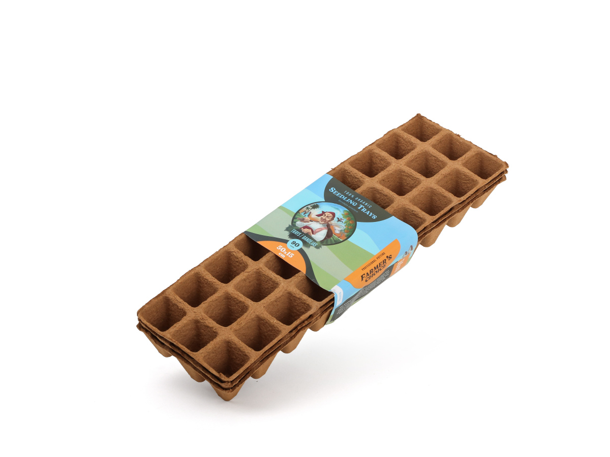 Las bandejas para semilleros Farmer’s Choice son soportes de fibra de madera y cal para ajuste del pH. Esta composición garantiza una consistencia suficiente en condiciones húmedas.