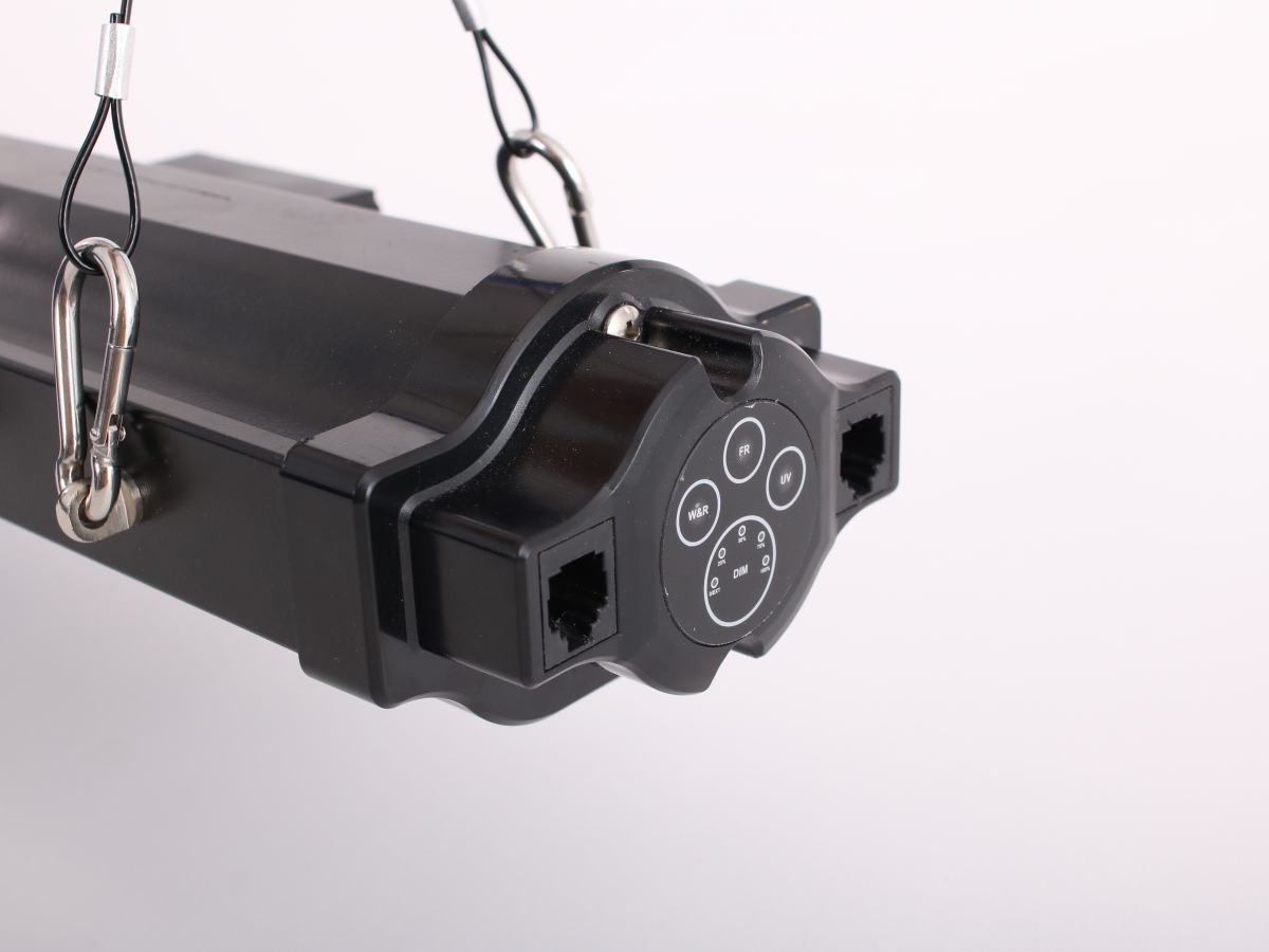 El sistema LED Galaxy UVFR es una solución de alto rendimiento para ciclos completos de iluminación en cultivos comerciales, con la capacidad de adaptarse a plantas en crecimiento vegetativo hasta plantas con mayor necesidad de luz en floración. Esta luminaria LED ha sido diseñada para llegar al máximo de PPFD en prácticas agrícolas junto con la suplementación de CO2. Cuenta con espectro ajustable al incorporar diferentes chips, entre ellos de luz infraroja y ultravioleta específicos para poder ajustar el sistema sólo con estos para adaptarse a la etapa de floración. Cada uno de los brazos presenta un revestimiento de cristal que potencia la emisión de los chips, llegando más intensidad de luz al dosel de tus plantas.