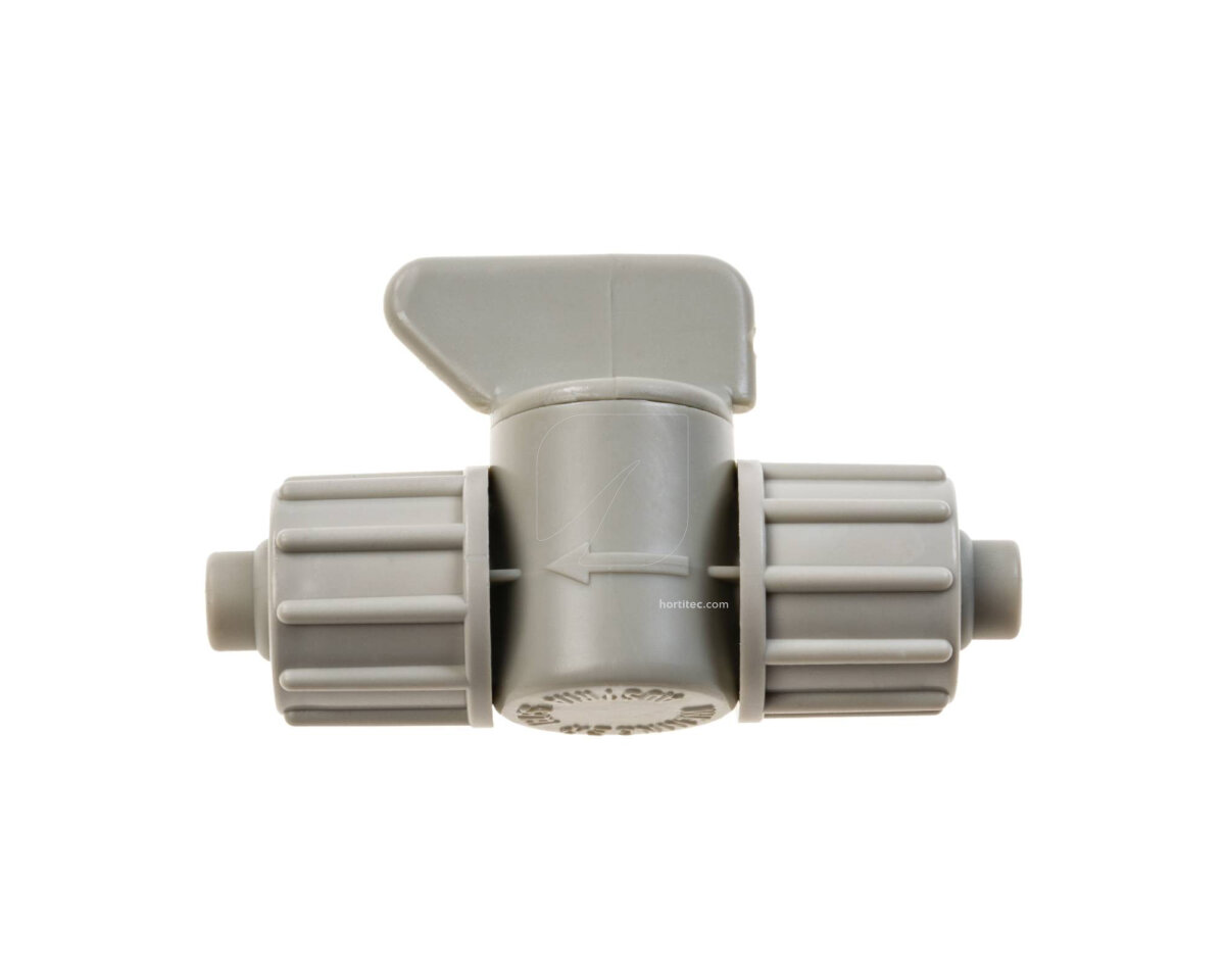 Válvula de cierre para tubo de riego o irrigación de 8mm de diámetro, de plástico.